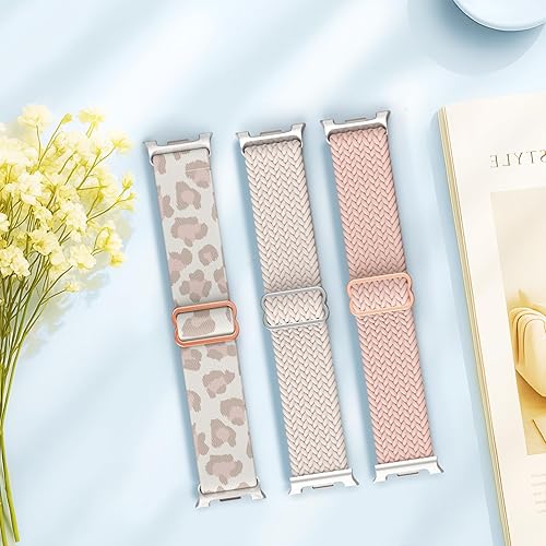 Delidigi Braided Stretchy Loop Compatible with Samsung Galaxy Watch 8 Band 40mm 44mm/Galaxy Watch 8 Classic 46mm No Gap One Click Elastic Nylon Replacement Straps for Men Women(Nude Pink/Starlight/Beige Leopard)