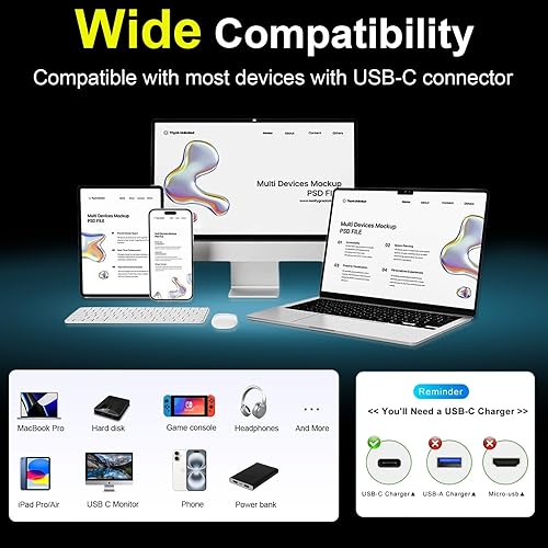 【240W PD Fast Power Charging】USB C to USB C Cable Short compliant with USB 4 standard, providing up to 240W fast charging, which is twice as fast as regular 100W/140W chargers. With PD and QC fast charging technology for safer use, it supports bi-directional charging for devices, and can be used in conjunction with USB hubs and multi-port adapters.