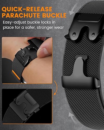 Parachute-Style Buckle: This elastic Band for Samsung Galaxy Watch Ultra is designed for ease and comfort, featuring an adjustable parachute-style buckle that is easy to put on and take off. Once adjusted, the buckle stays securely in place without sliding. The nylon band fits wrists from 4.72" to 8.07" (120mm to 205mm)