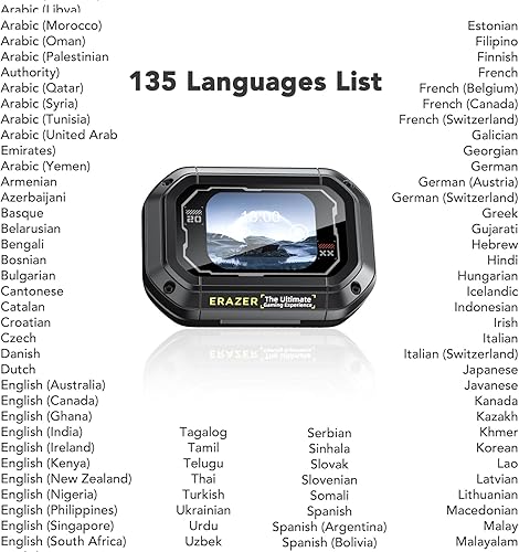 【135 Languages Translation Powered by AI】Our ERAZER XP6 translator earbuds support an impressive 135 languages, including Spanish, Chinese, English, Japanese, German, French, and more. To activate real-time translation, simply download the Earjoy app (By Scanning the QR Code On the Manual). Powered by advanced AI technology, our AI translation earbuds break language barriers, enabling effortless communication during international travel, business meetings, languages learning and beyond.