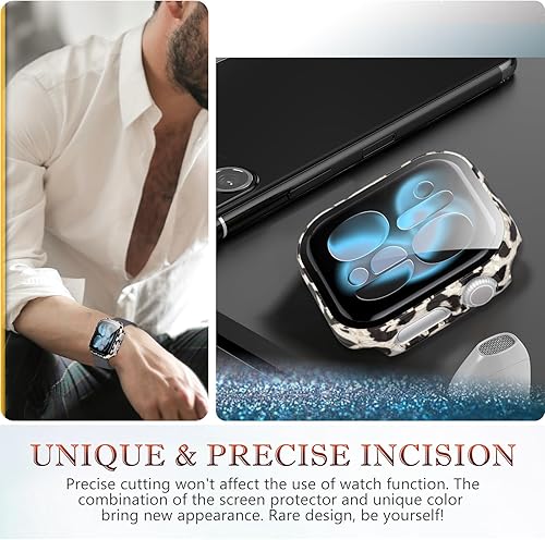 Fashion Case Compatible with Apple Watch Series 11/10 42mm Case, Tempered Glass Screen Protector + Unique Color Protective Face Cover for Apple iWatch Series 10/11 42mm Strap Accessories - Leopard(Leopard print,42mm for series 10/11)