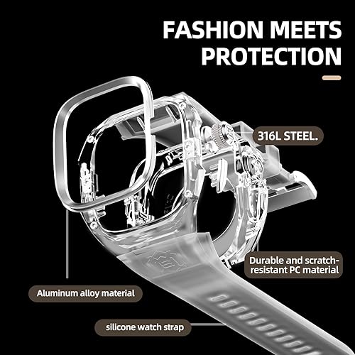 Premium Materials & Strong Protection: Crafted with durable, scratch-resistant PC, this 49mm watch case features a thickened multi-layer structure to effectively absorb impact from accidental drops. Its premium aluminum alloy frame, buttons, and buckle boost long-lasting durability while elevating the sleek look. Plus, the soft, breathable silicone strap ensures all-day wearing comfort.