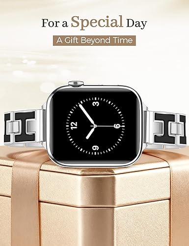 Stylish with Enamel: Inspired by modern jewelry design, this elegant band for apple watch features glossy enamel accents combined with silver metal links, creating a dressy and elegant look, perfect for iWatch bands for women in any occasion.