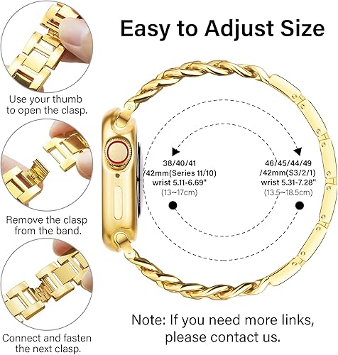 Comment on "Gold Watch Bands for Women Compatible with Apple Watch Bands SE Series 11 10 9 8 7 6 5 4 3 2 1(With Case) 38mm 40mm 41mm 42mm 45mm 44mm 46mm, Adjustable Replacement Bracelet for iWatch Bands(Gold,41mm/40mm/38mm)"