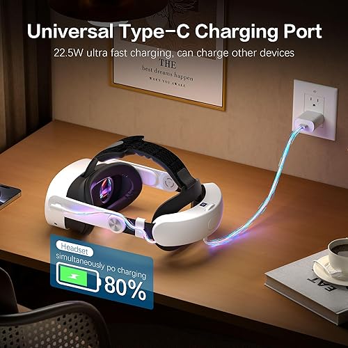 2.5-HOUR FAST CHARGING FOR CONVENIENCE: Fully recharge the built-in battery in about 2.5 hours using a 45W adapter (not included). Designed for seamless integration into your VR routine, this quest 3s head strap is perfect for users who value both function and efficiency in their meta quest 3 accessories