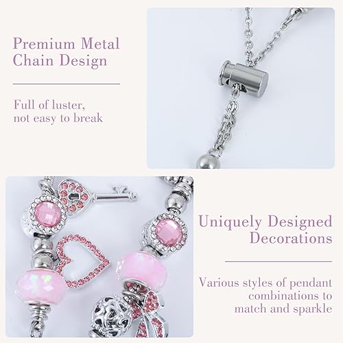 INSYOHO Bling Band Compatible with Apple Watch 38mm 40mm 41mm 42mm 44mm 45mm 46mm 49mm for Women, Sparkly Charm Bracelet Band with Adjustable Chain for iWatch Series 10 9 8 7 6 5 4 3 2 1 SE Ultra(Silver-Pink,38mm/40mm/41mm/42mm(Series 10))