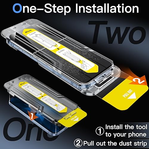 [One-Step Installation] Simply put the alignment tool on the device, pull out the dust strip, the screen protector will align automatically. No more worry about dust and air bubbles
