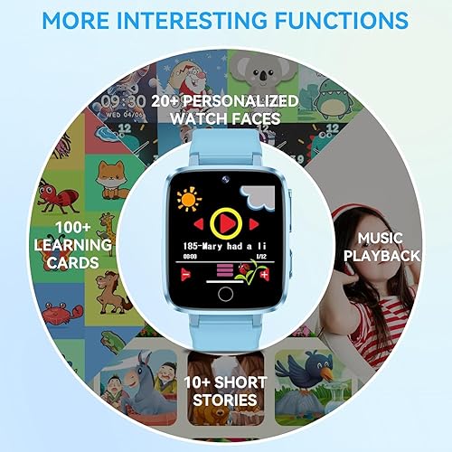 Audiobooks Learn Cards and 26 Educational Games: Kids smart watch Including learn cards and audiobooks with interactive stories and educational lessons, plus 26 engaging games that develop logic, memory and math skills. This innovative watch combines storytelling and learning functions you won't find in traditional watches, making it an ideal choice for curious boys and girls aged 4-12 years.