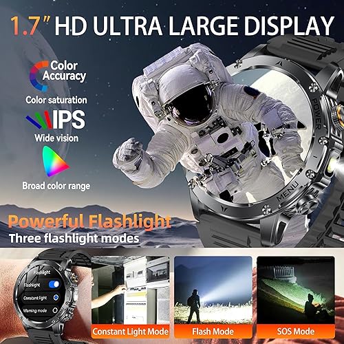 【1.7" HD Big Screen & Various Watch Faces】This AK87 smart watches feature a 1.7" HD screen and 60Hz adaptive refresh rate for smooth page transitions. The brightness of the men watch is adjustable, ensuring clear visibility even in direct sunlight, allowing you to easily read notifications, track fitness data, and view health data. This men's watch comes with 5 built-in watch faces, and the app offers over 100 unique online watch faces to choose from. You can also upload various photos or images to customize watch faces in different styles