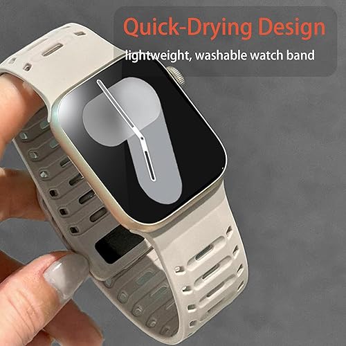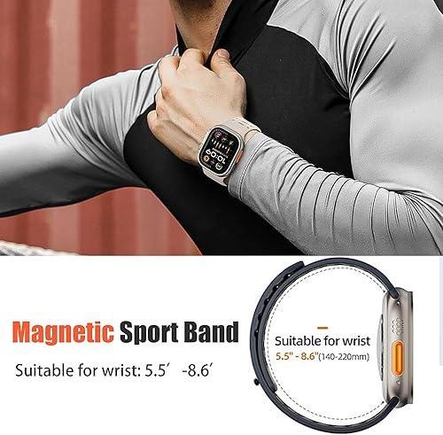 【Super Strong Magne@tic Buckle & Safety Clasp】magnetic silicone apple watch band This watch band features premium N53 neodymium ma@gnets and durable 316 stainless steel buckle, providing unparalleled security and anti-ma@gnetic performance. There are 12 ma@gnets on the long band and 5 ma@gnets on the short band to ensure a perfect fit, keeping your watch safe during intense activities such as sports, exercise, or outdoor adventures. The double protection design guarantees safety and fashion.