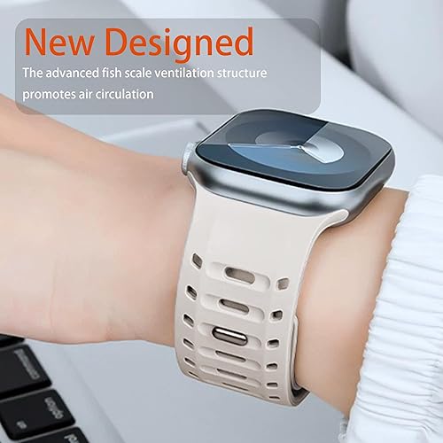 【Breathable and Quick-Drying Design】watch band for men The advanced fish scale ventilation structure promotes air circulation, making it breathable, sweat-proof, and quick-drying. This lightweight, washable watch band ensures maximum comfort during sports or outdoor activities, while its waterproof performance makes it ideal for swimming and other water sports. Stay fresh and comfortable all day long.