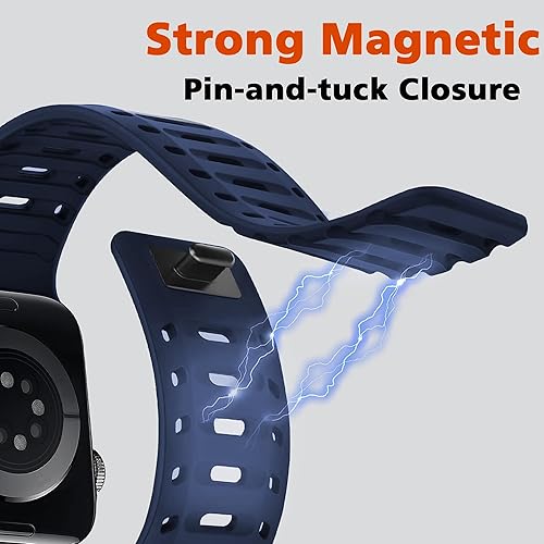 【Super Strong Magne@tic Buckle & Safety Clasp】magnetic silicone apple watch band This watch band features premium N53 neodymium ma@gnets and durable 316 stainless steel buckle, providing unparalleled security and anti-ma@gnetic performance. There are 12 ma@gnets on the long band and 5 ma@gnets on the short band to ensure a perfect fit, keeping your watch safe during intense activities such as sports, exercise, or outdoor adventures. The double protection design guarantees safety and fashion.