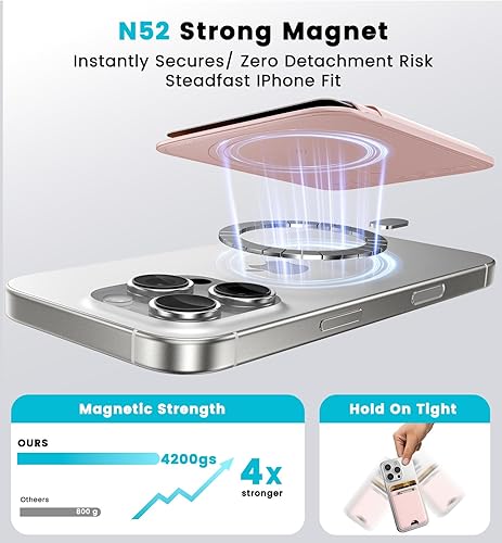 The wireless charging compatible iphone magsafe wallet is equipped with an upgraded chip for longer battery life. A full charge can last up to 6-8 months, ensuring long-lasting durability without frequent charging. Apple magnet Wallet is equipped with super strong N52 magnets with a magnetic force of up to 4200G, which can be firmly attached to your iPhone and maintain a stable connection. Whether you are commuting, traveling or relaxing, you can enjoy the convenience of wireless life.