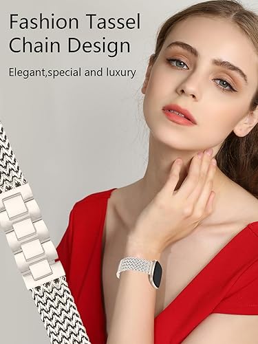 Metal Band Compatible for Fitbit Versa 2/1/Lite/SE, 22mm Dressy Stainless Steel Chain Strap Designer Wristband for Fitbit Versa Smartwatch(Starlight,Fitbit versa 1/2-22mm)