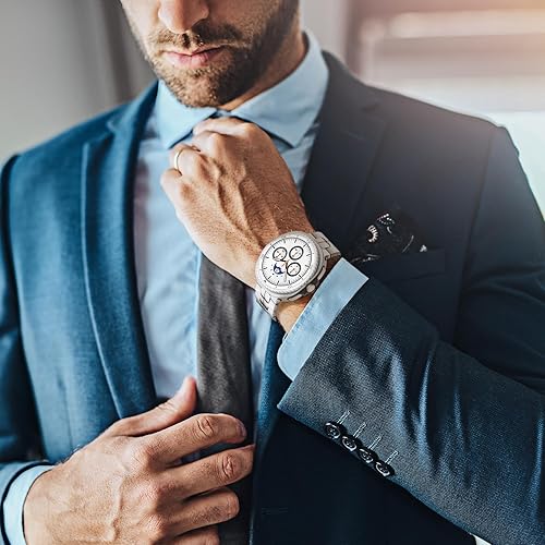 【Upgrade Electroplating】: Casual Business Stainless Steel Band replacement wristbands correa for Samsung watch 8 bands uses a nano-electroplating process that deeply embeds pigments into the metal, providing superior durability and a lasting shine compared to ordinary plating methods.Comes with One-click buttons for simple and easy band swapping, which locks onto your galaxy watch interface precisely and securely.Only takes two seconds to Install/Take off the galaxy watch 8 classic bands.