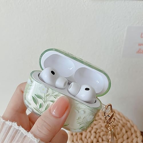 MINSCOSE Compatible with AirPods Pro 2nd/1st Generation Case Clear Case,Cute Pretty Flower Pattern Design with Floral Keychain, Soft TPU Protective Shockproof Cover for AirPods Pro/Pro 2-White Flower(Green,AirPods Pro 3)