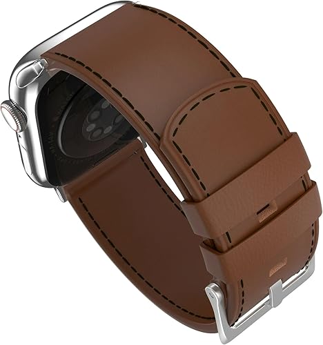 MobyFox Leather Watch Band - compatible Apple Watch Band for iWatch Series 11 10 9 Ultra 8 7 6 5 4 3 2 1 SE - (Premium Brown)