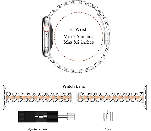 【Easy to Adjust】We will provide removal tool and an instruction. You can easy to remove the extra links to fit for your wrist. The band fit 5.2-8.6 inches (132mm-216mm).