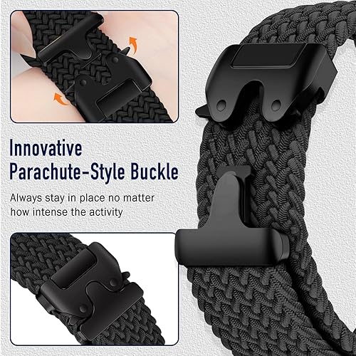 Nylon Braided Watch Band for Garmin Venu 4 45mm/Forerunner 570 47mm/Forerunner 265/255, 22mm Secure Parachute-Style Buckle Strap for Garmin Venu 3 45mm/Venu 2/Vivoactive 4(Black)