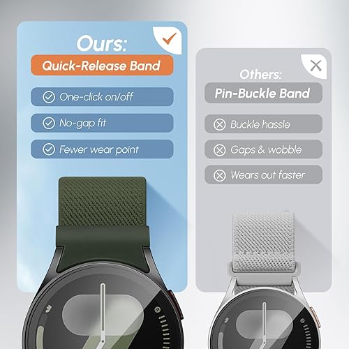 Comment on "One Click Magnetic Band Compatible with Samsung Galaxy Watch 7 6 5 4 FE 40mm 44mm/ 6 4 Classic 43mm 47mm 42mm 46mm / 5 Pro 45mm, 20 mm No Gap Sport Nylon Strap for Women Men(military green,20mm)"
