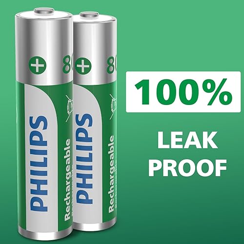 LEAKPROOF DESIGN: Philips rechargeable aaa batteries in this AAA battery pack made with recycled materials and the chargeable batteries are designed to prevent leaks
