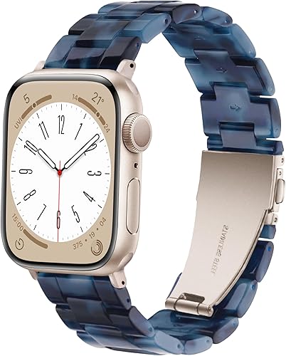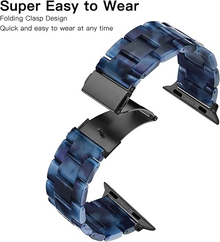 Resin Band for Apple Watch Bands 42mm 41mm 40mm 38mm, fit Apple Watch Bands for Women 40mm, iWatch Bands for Women, Strap for Apple Watch Series Series 11 10 9 SE 8 7 6 5 4 3-Pearlized Blue(Dark Blue,42mm(Series11/10)/38mm/40mm/41mm)