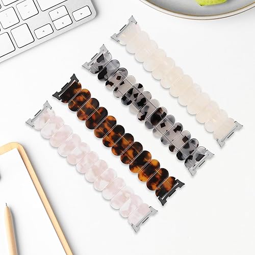 【Lightweight & Comfort】: The strap is made of high-end resin material, highly polished, light and shiny. Its bright color will not fade with time, and it is comfortable and skin-friendly. The resin sheets are connected by elastic ropes, which are flexible, firm and durable.