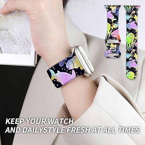 Silicone Watch Band Compatible with Apple Watch 38mm 40mm 41mm, Adjustable Soft Replacement Strap for Women Men, Compatible with iWatch Ultra2/1 SE Series 10 9 8 7 6 5 4(colorful Shark fish,38mm/40mm/41mm)