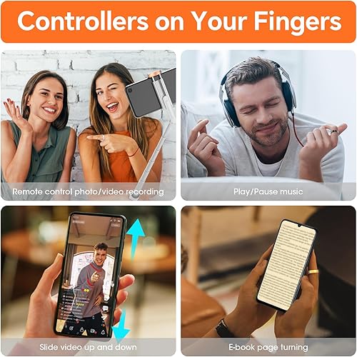 【Remotely Control Your Phone】 After turning on the gesture function, quickly shake the ring twice to easily control your device. You can switch videos, take photos/videos, start/pause music, play games and browse e-books without clicking the phone screen. (Note: This function needs to be turned off when not in use to prevent accidental touches on the phone page and volume.)