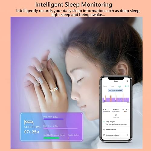 Sleep Tracker-This smart health ring for women can automatically monitor your sleep. Monitor your sleep time, wake-up time, and sleep quality (deep sleep and light sleep) through charts. You can view daily, weekly, and monthly sleep data in the app to help you better adjust your habits and improve your sleep quality. The fitness ring is comfortable to wear, and you won't even notice it's there while monitoring your sleep.