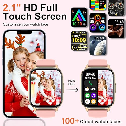 2.1'' HD Touch Screen and 200+ DIY Dials: Smart watch for android phones is equipped with a 2.1‘’ ultra-clear full-touch color screen, which can provide excellent picture quality. With the companion app, you can download more than 200+ personalised dials and set it as your desktop, as well as DIY photos of your family, pets, selfies, etc. as backgrounds for watches for men women. The smartwatches come with 5 levels of brightness options that will make it easy to use it in sunlight or darkness.