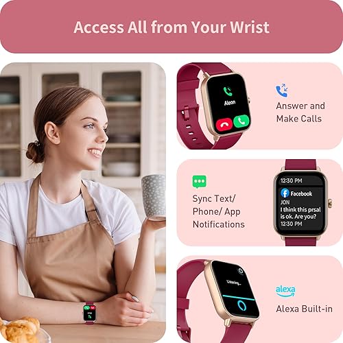 【Keep in Touch & Alexa Built-in】This bluetooth smart watch allows you to Make/Answer/Reject Calls on the go. Also, receive notifications from your smartphone on your wrist such as Facebook, Instagram, WhatsApp, Snapchat, WhatsApp and more. What's more, the smart watches for women come with the Alexa voice assistant, with voice commands you can set alarms, check the weather, control music. (THE WATCH CAN NOT SEND MESSAGES, or TEXT BACK)