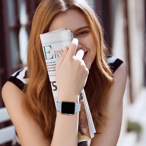 【High-quality Soft Silicone Material】:Our band made of premium soft silicone,lightweight, persistent, skin-friendly,no PFAS,touch comfortable, water-resistant and sweat-proof; perfect for everyday wear and workouts. The metal classic clasp is made from low sensitivity alloy,which does not irritate the skin and stable. make it easy to take your apple watch from work to workouts routine.
