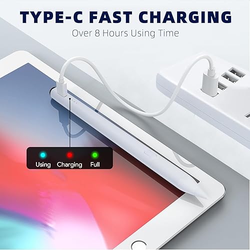 【Quick Charge & Long Usage Time】Charge for Just 20-25 Minutes and Enjoy a Whopping 8 Hours of Uninterrupted use.Plus,the iPad Pro Pencil Powers Down After 10 Minutes of No use to Conserve Energy,With a One-Minute Warning Flash Before Sleeping.Triple-Indicator Power Display,With Just a Glance,Effortlessly Gauges Your iPad Pro Pencil's Battery Life,Ensuring You're Always Ready to Create.