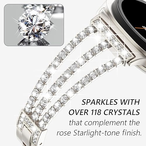 Surace Compatible with Samsung Galaxy Watch 8 Band 40mm 44mm, Galaxy Watch 8 Classic Band 46mm Women Bling Diamond Rhinestone Link Bracelet for Galaxy Watch 8(Starlight)