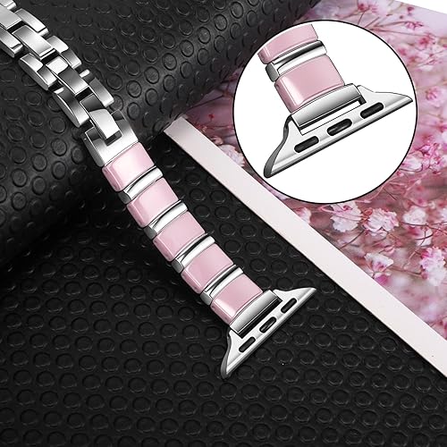 TRUMiRR Women Band for Apple Watch Series 11 10 42mm, Ceramic & Stainless Steel Watchband Slim Jewelry Strap for iWatch SE 3 Series 9 8 7 6 5 4 41mm 40mm 38mm(Pink Ceramic + Stainless Steel,42(Series 11 10)/ 41 / 40 / 38mm)