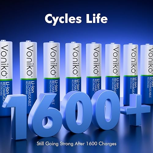 【Wide Compatibility & Versatile Application】Voniko rechargeable lithium AAA batteries maintain a steady 1.5V output, making them suitable for both high and low drain devices. Ideal for game controllers, VR grips, cameras, RC cars, LED flashlights and so on. Also reliable in educational, office, and healthcare environments, ready to support your dynamic lifestyle.