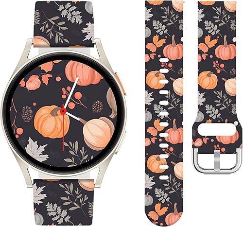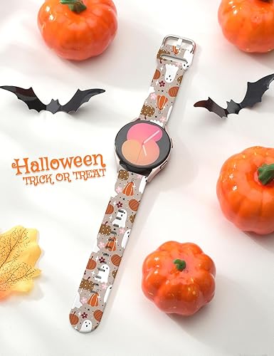 Watbro 20mm Halloween Band Compatible with Samsung Galaxy Watch 7 6 5 4 FE 40 44mm Bands for Women Men,Cute Holiday Sport Pumpkin Strap for Active 2/Galaxy Watch 3 41mm/Garmin Vivoactive 5/Venu(Ghost Pumpkin 12)
