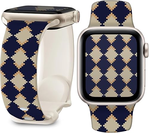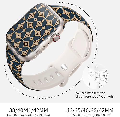 Watch Band Compatible with Apple Watch 38mm 40mm 41mm 42mm 44mm 45mm Soft Silicone Wristbands Replacement Strap with Classic Clasp for iWatch Series SE11 10 9 8 7 6 5 4 3 2 1 Utral for Women(Retro pattern 1,38/40/41MM)